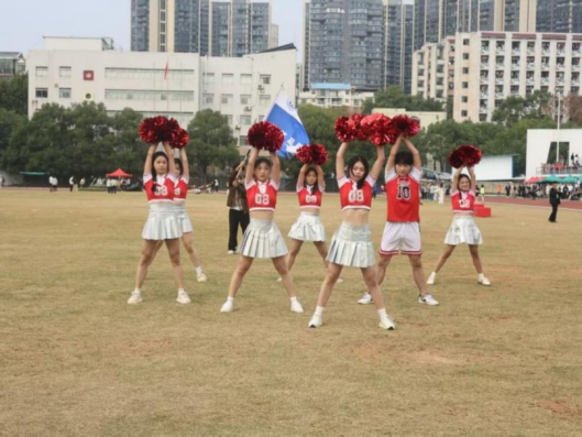 比赛中,学院啦啦操队为全校同学多次表演精彩舞姿,同学观众积极加油鼓劲、高声助威,工作人员敬业奉献,大家共同努力,为学院在大运会上创佳绩奠定了基础,也充分展现我院团结一致、积极进取的精神。