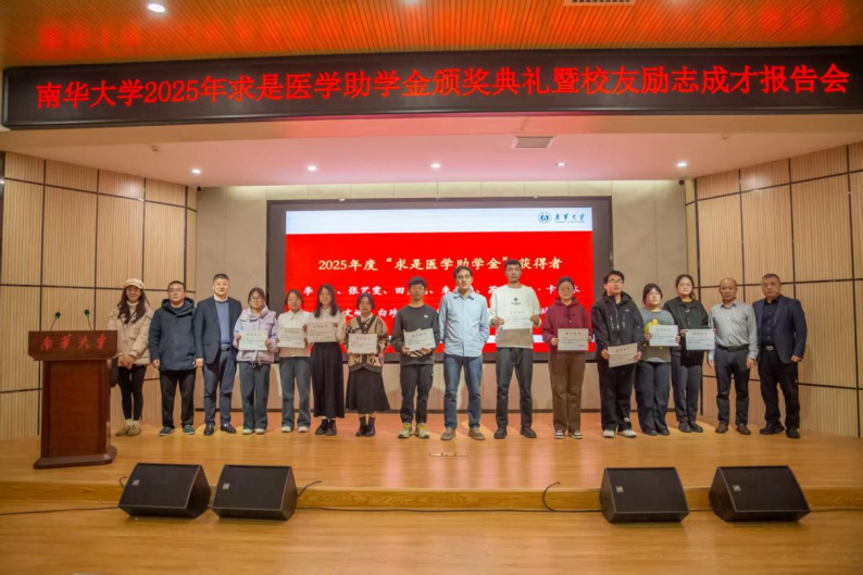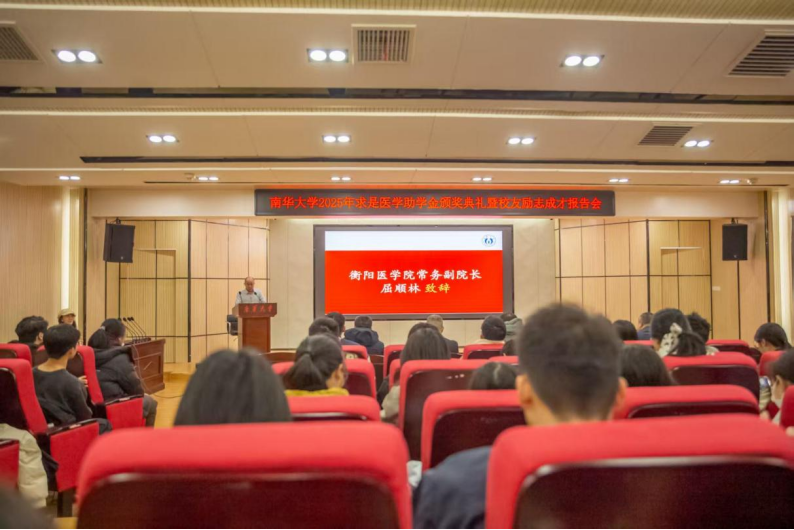 12月27日下午3点,南华大学2025年求是医学助学金颁奖典礼暨校友励志成才报告会在医研楼会议室准时召开。本次会议旨在感恩校友的母校情怀,激励同学们在爱的滋养下努力向前。出席本次会议的有衡阳医学院常务副院长屈顺林,教育发展与校友联络办公室主任李先国,衡阳医学院党委副书记卢清华,基础医学院副院长谢巍,2011届杰出校友唐建明。
