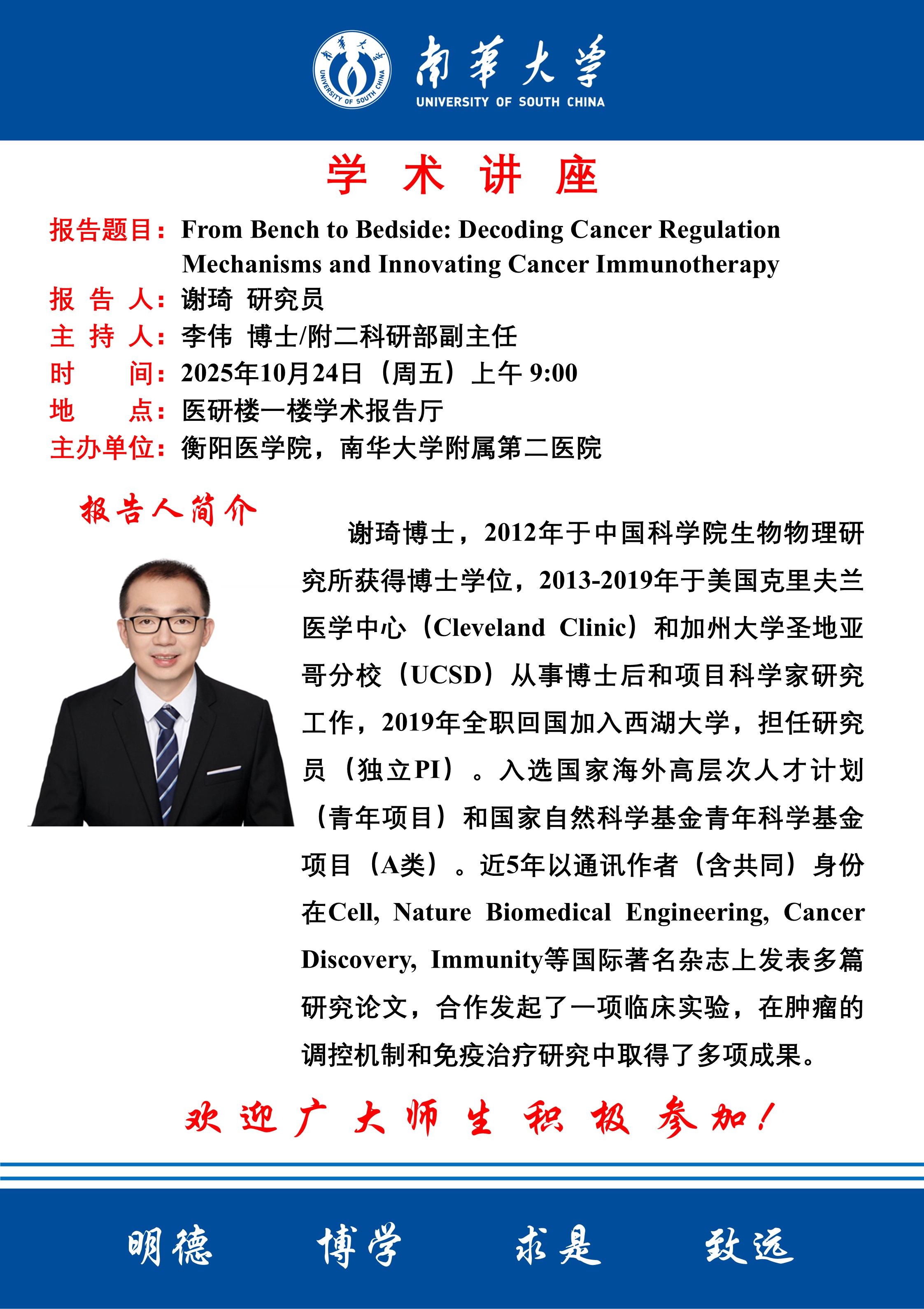 上一条:衡山鸿儒论坛 | 杨晴来教授:NIR-II有机探针的理性设计及其协同诊疗应用研究 下一条:衡山鸿儒论坛 | 钱贻崧教授:血管内皮炎症的调控机制和干预策略