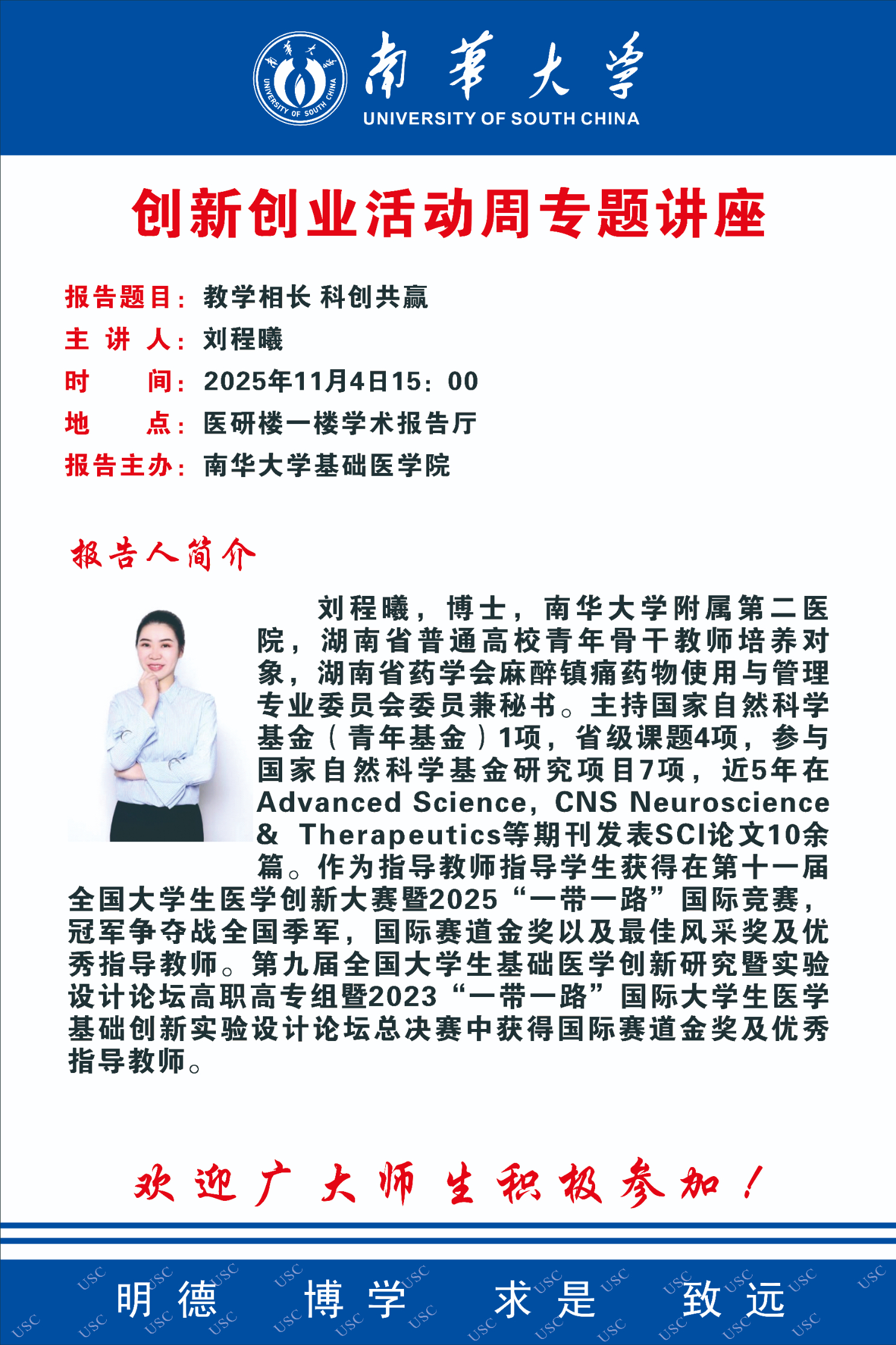 上一条:创新创业活动周专题讲座 | 黄靓:挑战杯,挑战YOU! 下一条:创新创业活动周专题讲座 | 曹洪:乳腺甲状腺外科面临的临床问题及医工结合探索