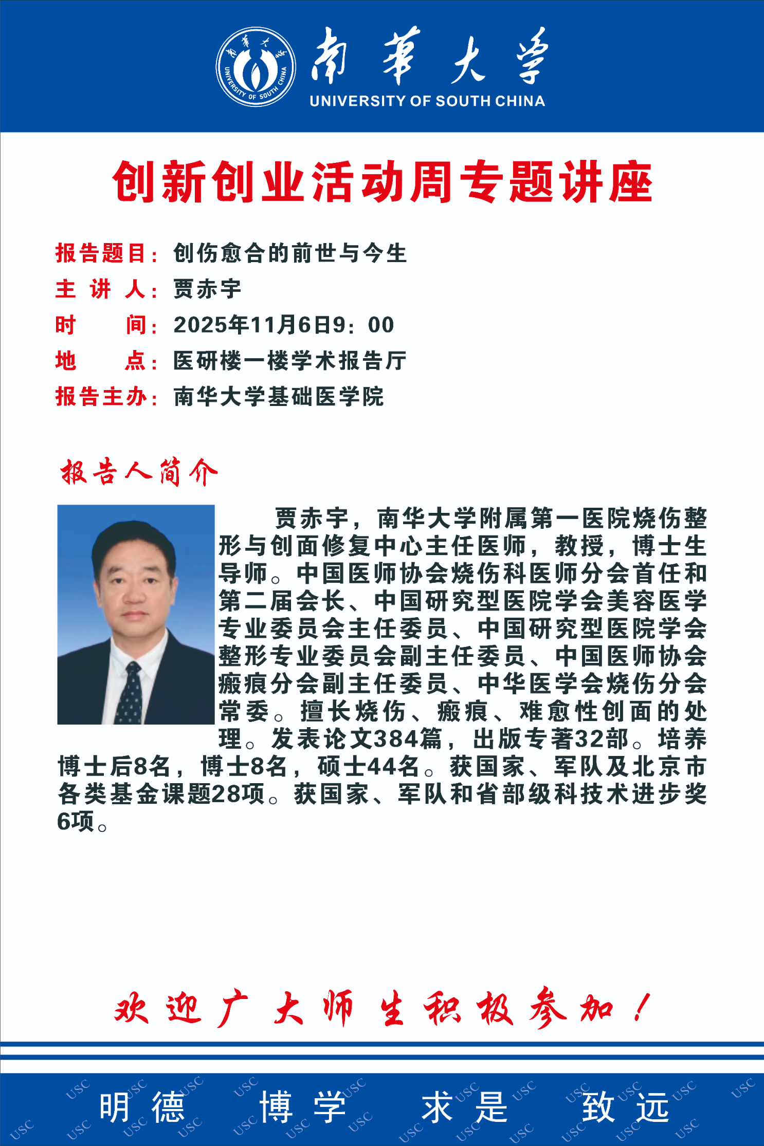 创新创业活动周专题讲座 | 贾赤宇:创伤愈合的前世与今生