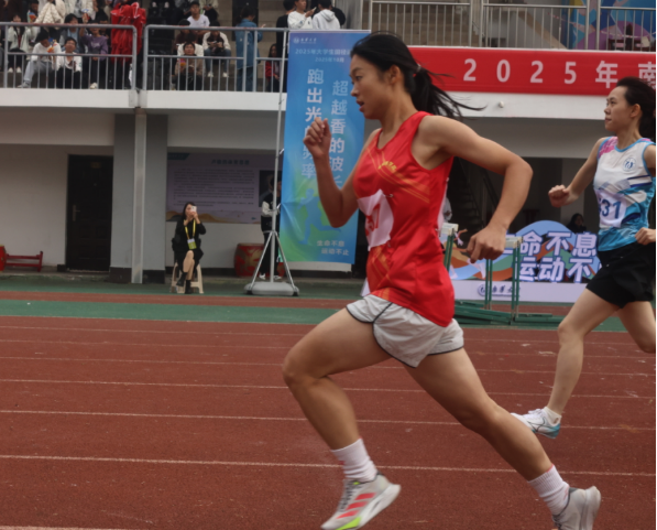 2025年11月1日,南华大学大学生田径运动会女子400米决赛在北校田径场隆重举行,在这秋高气爽,万物精神的赛场上,基础医学院本23临床医学12班的黄毓君以1分12秒的成绩摘得桂冠,本24全医01班王宇婷则以1分15秒收获季军。
