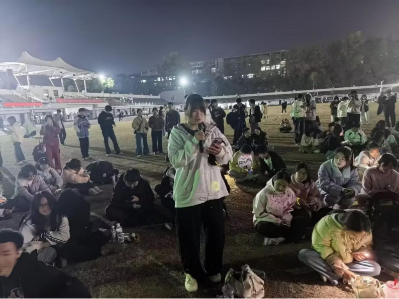 游戏热度为歌唱环节注入更强活力,第二轮演唱堪称“集体共鸣时刻”。《至少还有你》的深情让新生们默契对视,《身骑白马》的闽南语唱段引发全场跟唱,吉他弹唱《我最亲爱的》让温情随晚风流淌,《在你身边+Mr.Forgettable》的轻快转调又让氛围重回明快。此刻的演唱已超越单纯表演,成为新生情感表达的载体,有人摇摆附和,有人轻声跟唱,音乐的纽带让心与心的距离不断拉近。