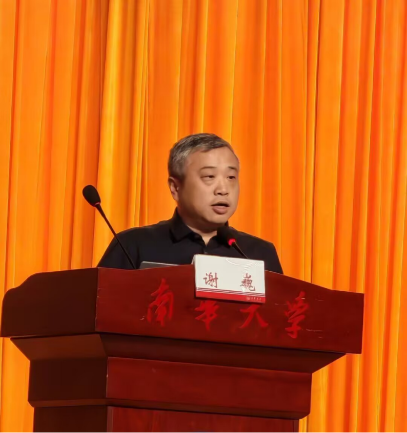 随后,副院长谢巍作学业规划主讲,他以“今日衡医人,永铸衡医魂”主题,以校友、教师与教学管理者三重身份,阐述了医学学习的特殊使命。他指出医学生应对生命怀有敬畏之心,强调医学知识体系具有全新性和系统性,必须扎实打好基础。他带领同学们回顾了衡阳医学院自1958年创办以来的发展历程,详细介绍衡阳医学院现有学科布局、附属医院体系、人才培养平台及所获荣誉等,增强同学们的归属感与认同感。