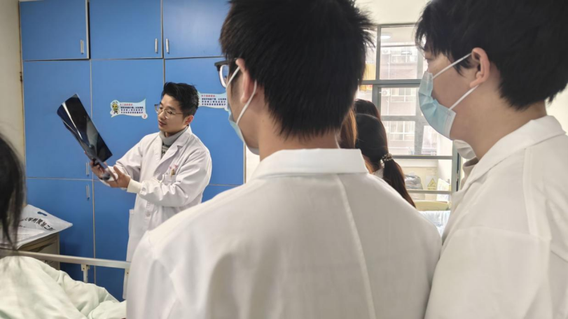 查房环节中,带教老师结合具体病例详细介绍了患者术前身体状况、诊疗方案设计以及术后恢复的注意事宜,让同学们直观了解临床诊疗的完整流程。同时,老师还注重传递“以患者为中心”的理念,示范了在操作中融入语言抚慰、肢体安抚的沟通技巧,同学们在老师指导下尝试与患者互动,深刻体会到医学人文关怀的重要内涵。