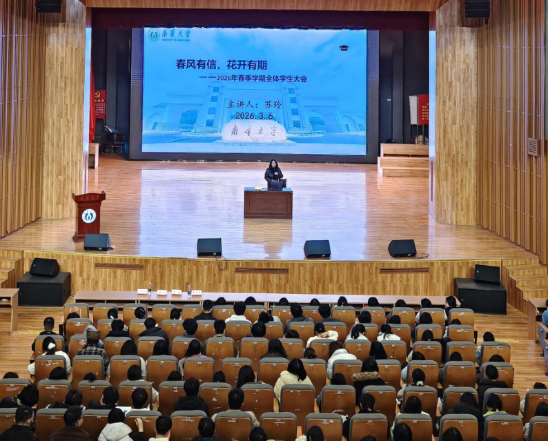 为落实学校开学“五个一”工作要求,持续强化学风建设与校园安全意识,基础医学院于3月6日晚在南校大礼堂召开2025级本科生年级大会暨新学期开学安全教育大会。基础医学院党委副书记卢清华,2025级本科辅导员苏玲、夏泽华出席本次大会,2025级本科生八百余人参加。会议由苏玲主持。