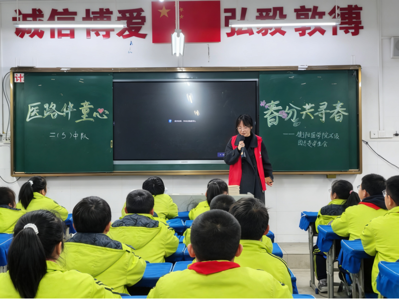 为弘扬中华优秀传统文化,增强医学生社会责任感和文化素养,基础医学院2025级团学会于3月20日春分清晨,在蒸湘区实验小学成功举办“医路伴童心·春分共寻春”主题实践活动。本次活动吸引54名小学二年级学生参与,辅导员苏玲到场指导,活动由25级团学会团总支副书记谢承霖主持。