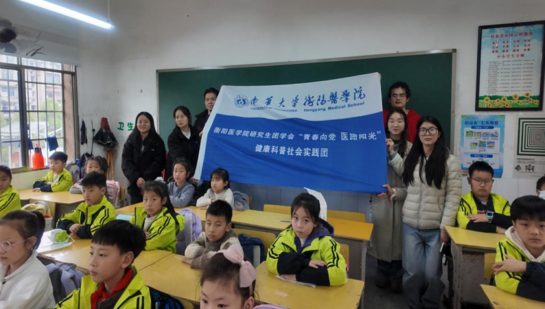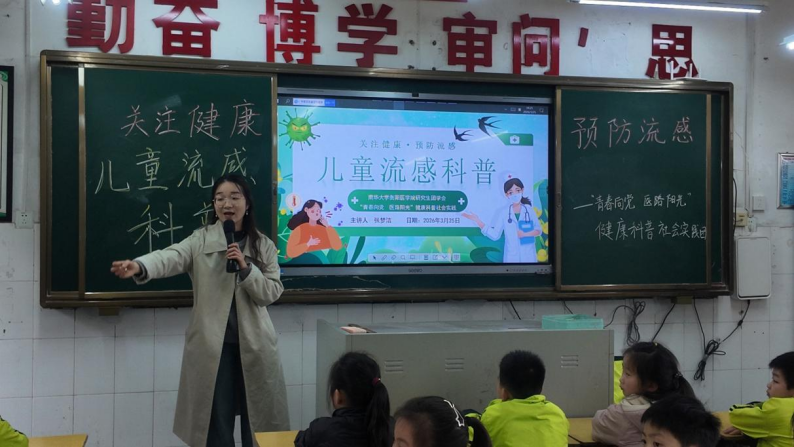 为弘扬和践行雷锋精神,助力健康湖南,2026年3月25日 ,南华大学衡阳医学院研究生团学会“青春向党 医路阳光”健康科普社会实践团走进蒸湘区实验小学三(2)班,开展儿童流感科普专题活动,把专业的流感防护知识变成通俗易懂的趣味讲解,为孩子们的健康成长筑牢“防护墙”。