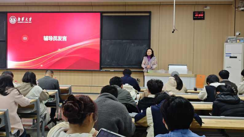 在部门汇报后,年级辅导员围绕现阶段重点工作作讲话。赵琳老师作征兵宣讲与安全教育,强调要积极响应国家征兵号召,同时紧抓消防安全、宿舍卫生等日常管理,筑牢校园安全屏障;胡奉佳老师通过详实的数据分析年级同学在校基本情况,涵盖学习成绩、入团入党、第二课堂参与度等核心指标,为班级、部门精准开展活动提供依据;佘雅老师对团学会各部门工作进行细致点评,肯定成绩的同时指出改进方向,并从“思想引领、服务同学、成长成才”三个维度对年级工作作全面部署,要求全体成员以“功成不必在我”的境界和“功成必定有我”的担当,推动团学工作再上新台阶。