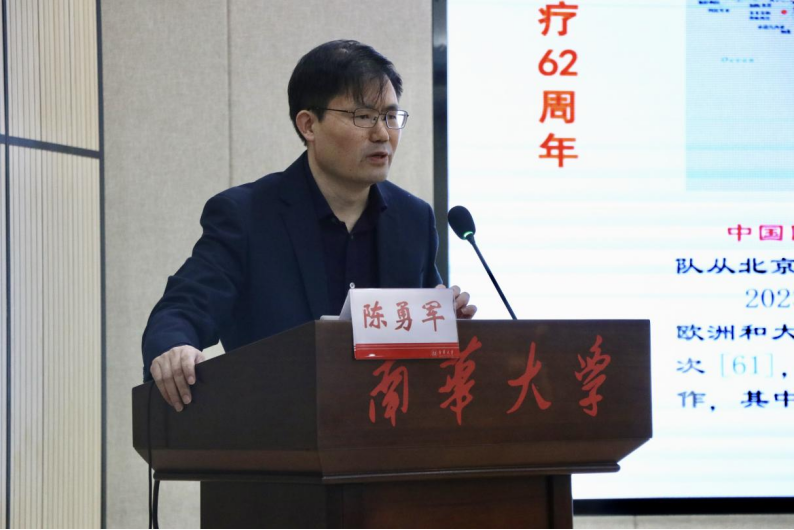 陈勇军教授深情回顾了带领第24批援非医疗队在非洲塞拉利昂执行医疗任务的艰辛历程。在设备匮乏、传染病高发、政局不稳的复杂环境中,医疗队扎根塞中友好医院,完成门诊2.2万人次、住院治疗1200人次、手术400余台的医疗工作,并在当地开展多项首创手术。队员们克服战乱、停电、断水的艰难困苦,用手机照亮手术台,开展义诊宣教2000余人次,培训本地医护人员200余名,推动25人赴华进修,留下“带不走的医疗队”。援塞医疗队的卓越贡献获塞拉利昂政府高度认可,为南华大学获评全国援外医疗工作先进单位汇聚了力量。