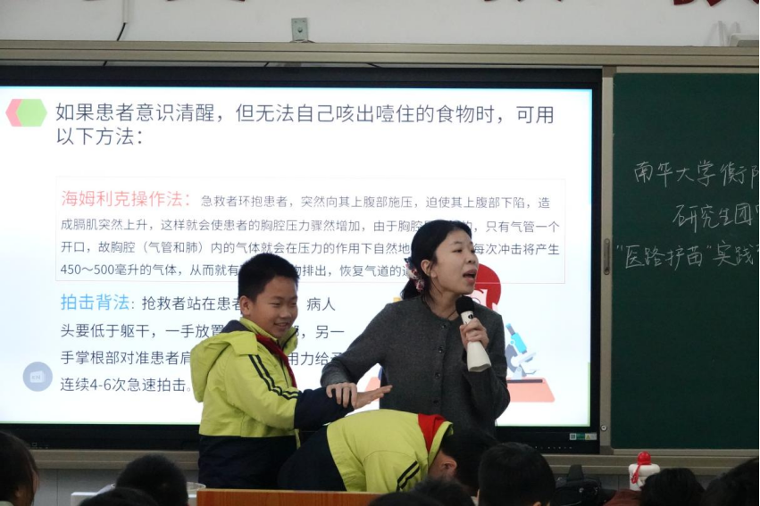 2025年12月30日上午,南华大学衡阳医学院“医路护苗”实践育人活动团队走进蒸湘区实验小学,为五年级(8)班的同学们带来了一场生动实用的急救安全小课堂。通过情景模拟、互动演示等活动形式,帮助孩子们掌握在突发情况中保护自己与他人的正确方法。